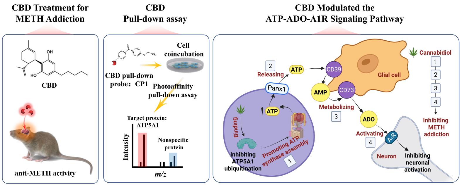 近日,best365化工学院金沙博士联合中国科学院长春应用化学研究所王晓辉研究员团队,在药学领域顶级期刊《Acta Pharmaceutica Sinica B》(APSB,IF 14.6)上发表了题为“Cannabidiol alleviates methamphetamine addiction via targeting ATP5A1 and modulating the ATP-ADO-A1R signaling pathway”的研究论文。该研究首次揭示了大麻二酚(CBD)通过作用于线粒体ATP合成酶亚基ATP5A1,调控ATP-腺苷-腺苷A1受体信号通路,从而显著...