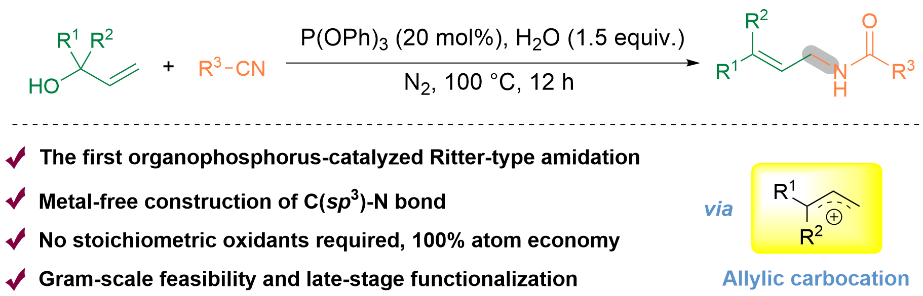 近日,best365化工学院朱龙志博士在国际学术期刊《Green Chemistry》(中科院一区TOP期刊,影响因子9.2)上发表题为“Metal-free triphenyl phosphite-catalyzed Ritter-type amidation of allylic alcohols”的学术论文(DOI:10.1039/D5GC03351A)。据悉,该研究团队首次报道了一种无金属、无氧化剂参与,由亚磷酸三苯酯催化的烯丙醇Ritter型酰胺化反应。该方法在温和条件下实现100%原子经济性的酰胺合成,兼容多种烯丙醇与腈类...