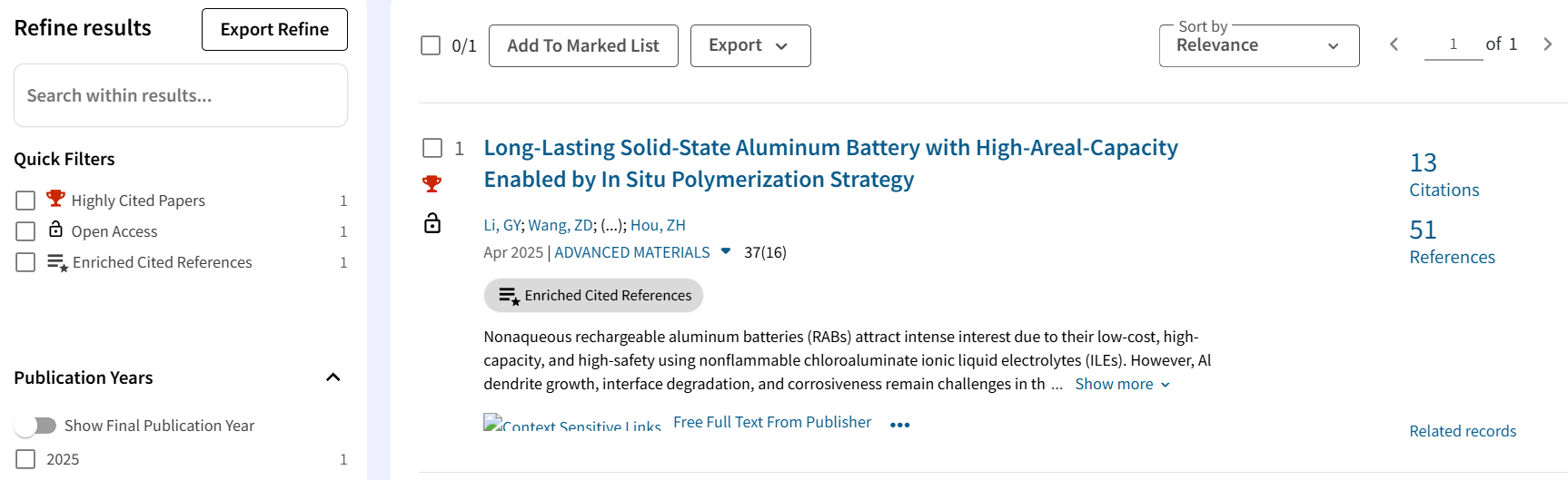 根据基本科学指标数据库(Essential Science Indicators,ESI)2025年11月发布的最新数据,best365侯朝辉教授团队于2025年3月发表在《Advanced Materials》(中科院一区TOP期刊,影响因子26.8)上的研究论文“Long-Lasting Solid-State Aluminum Battery with High-Areal-Capacity Enabled by In Situ Polymerization Strategy”入选材料科学领域全球前1%高被引论文。化学化工学院青年教师李刚勇博士为该论文第一作者及通讯作者,...