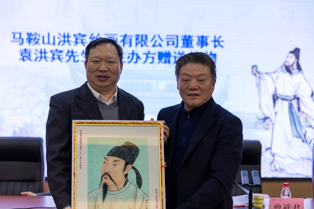 马鞍山文化和旅游局党委书记、局长何俊介绍,中国李白研究会成立之初,将研究会的会址及会刊编辑部设在马鞍山市,马鞍山专门成立了李白研究所,作为研究会的专专职办事机构,从此马鞍山市和中国李白研究会相互相互扶持,共同发展。他希望李白研究会将李白文化这颗璀璨明珠呵护好、传承好,担负起新的文化使命。开幕式上,中国工艺美术大师、马鞍山洪宾丝画有限公司董事长袁洪宾向学校捐赠了丝棉画《李白画像》。