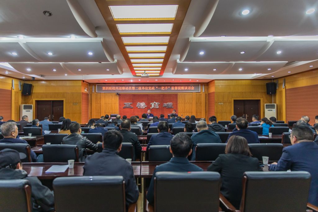 11月10日,学校召开第四轮校内巡察工作动员部署会暨二级单位党政主要负责人监督提醒谈话会。党委书记、巡察工作领导小组组长卢先明出席会议并作动员讲话,纪委书记、巡察工作领导小组副组长谢贵辉主持会议并通报相关情况,徐小立、徐振祥、汤小红、丁跃浇、汤福球等学校领导出席会议。学校全体二级单位党政主要负责人、第四轮巡察工作巡察组全体成员参会。