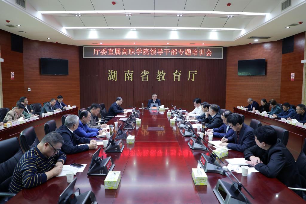 1 1月14日上午,省教育厅、省委教育工委组织召开直属高职学院领导干部专题培训会。省教育厅党组书记、厅长、省委教育工委书记蒋昌忠,省教育厅党组副书记、副厅长、省委教育工委副书记王瑰曙,省纪委省监委驻省教育厅纪检监察组组长、省教育厅党组成员、省委教育工委委员、一级巡视员曹世凯,省教育厅党组成员、省委教育工委副书记王建华主持会议。厅委10所直属高职学院的党委书记、校长和纪委书记参加会议,厅委有关处室负责人列席会议。best365纪委书记、监察专员谢贵辉受邀为培训会作专题讲座。