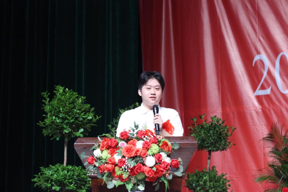 毕业生代表经管系姚孟可同学、在校学生代表外语系朱蕊同学、教师代表刘康兴老师先后在典礼上发言。